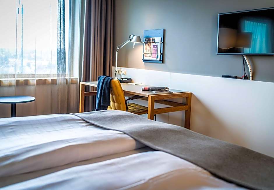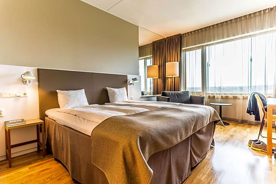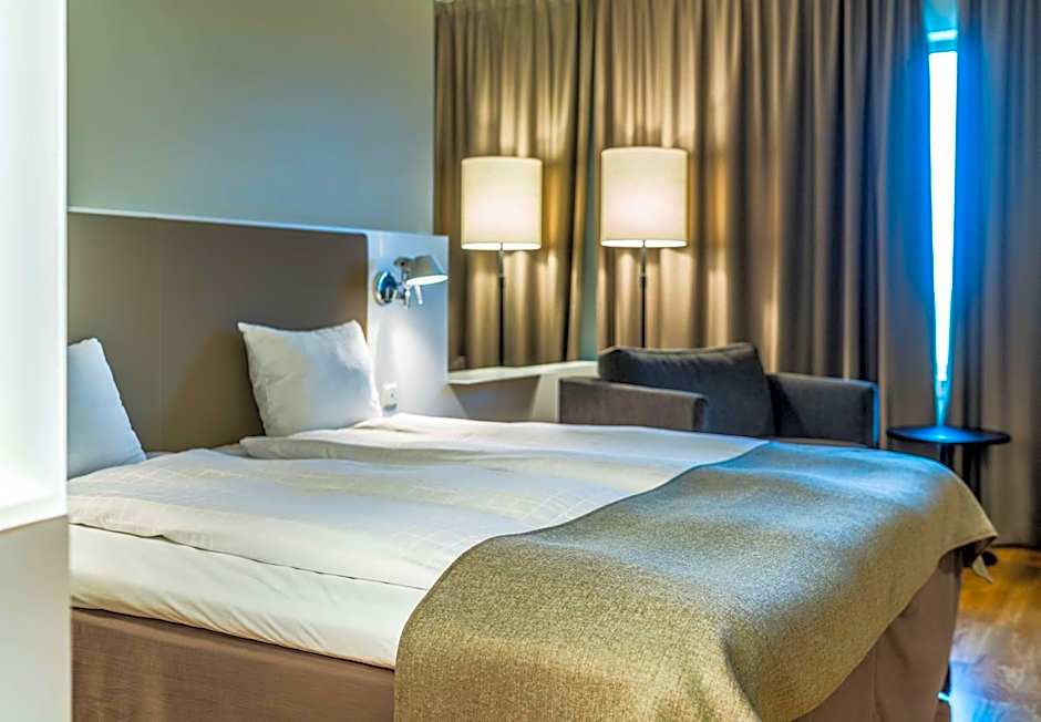 Room on the upper floors with magnificent city views. Free toiletries from FACE Stockholm are included.